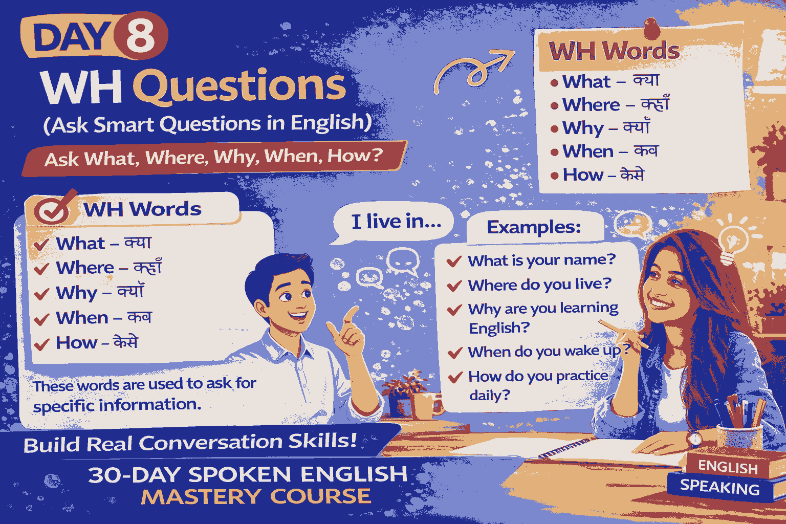 🎯 Day 8 – WH Questions (Ask Smart Questions in English)
